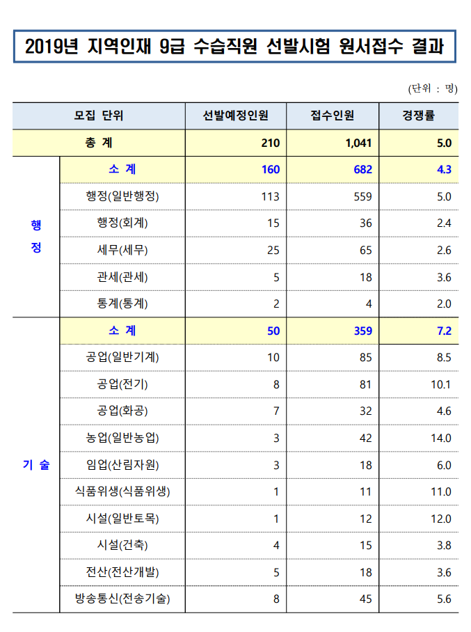 ▶ 2019 인사혁신처 지역인재 9급 수습직원 선발시험 경쟁률