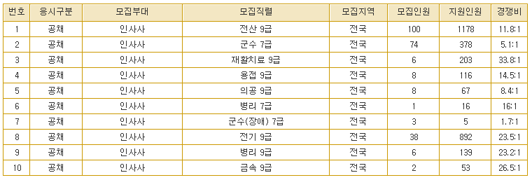 ▶ 2020 육군 일반군무원 공채 채용시험 경쟁률