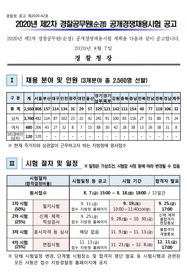 ★ 2020년 경찰청 제2차 순경 공채시험 일정 공고문