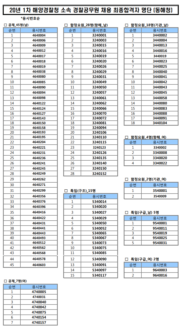 ★ 2020년 제1차 경찰공무원 채용 최종 합격자 알림 (동해청)