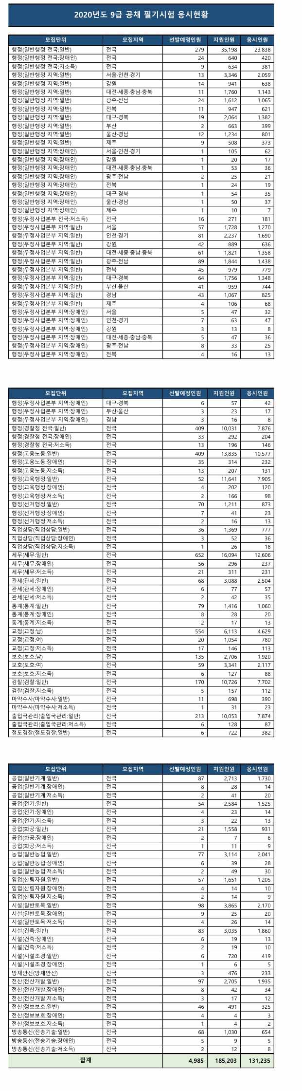 ▶ 2020 인사혁신처 국가공무원 9급 공채 필기시험 응시율