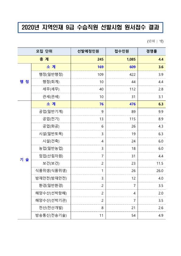 ▶ 2020 인사혁신처 지역인재9급 수습직원 선발시험 경쟁률