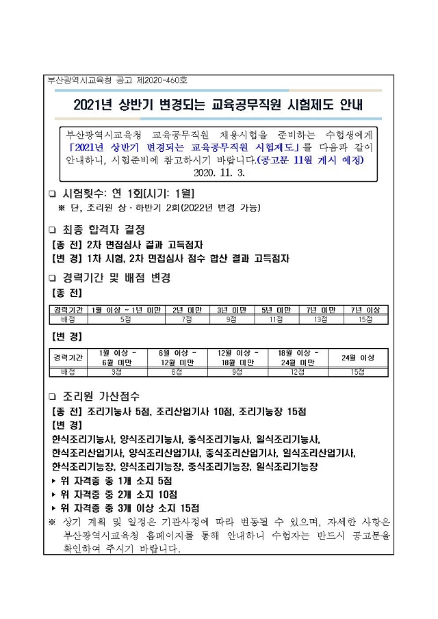 ▶ 부산광역시 교육청 2021년 상반기 변경되는 교육공무직원 시험제도 안내