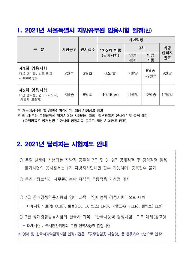 ▶ 2021년 서울특별시 지방공무원 임용시험 일정안내