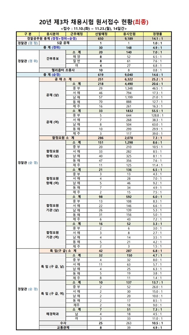 ▶ 2020년 제3차 해양경찰청 경찰공무원 채용시험 경쟁률