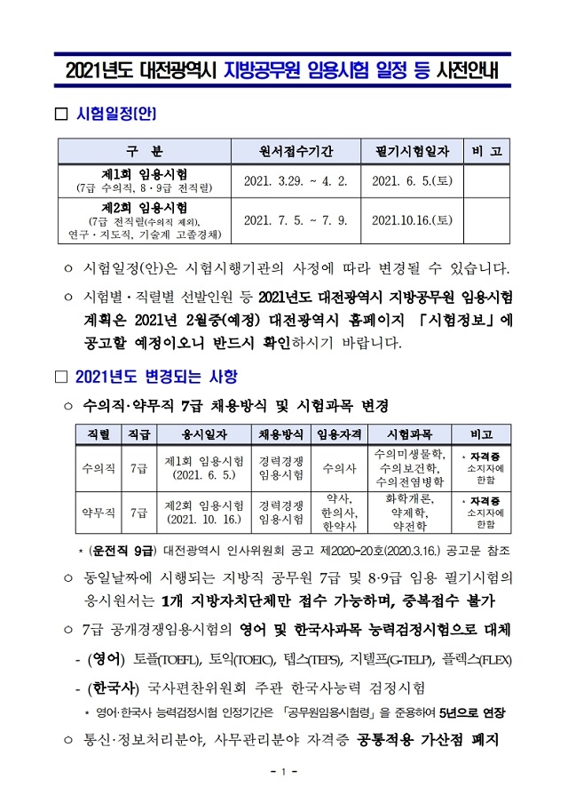 ▶ 2021년 대전광역시 지방공무원 임용시험 일정안내