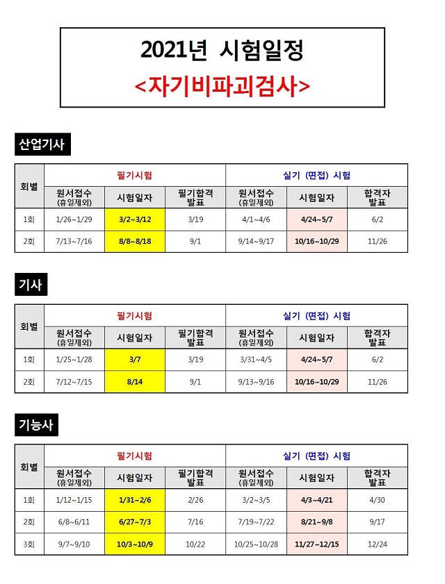 2021 자기비파괴검사 시험일정 (필기/실기)
