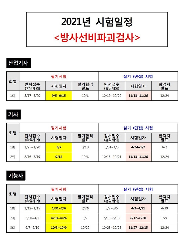 2021 방사선비파괴검사 시험일정 (필기/실기)