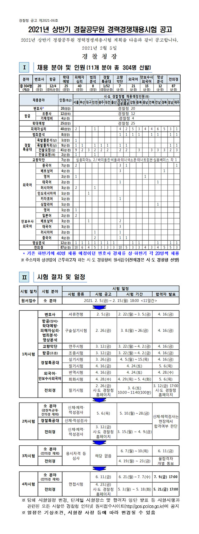 ▶ 2021년 상반기 경찰공무원 경력경쟁채용시험 공고