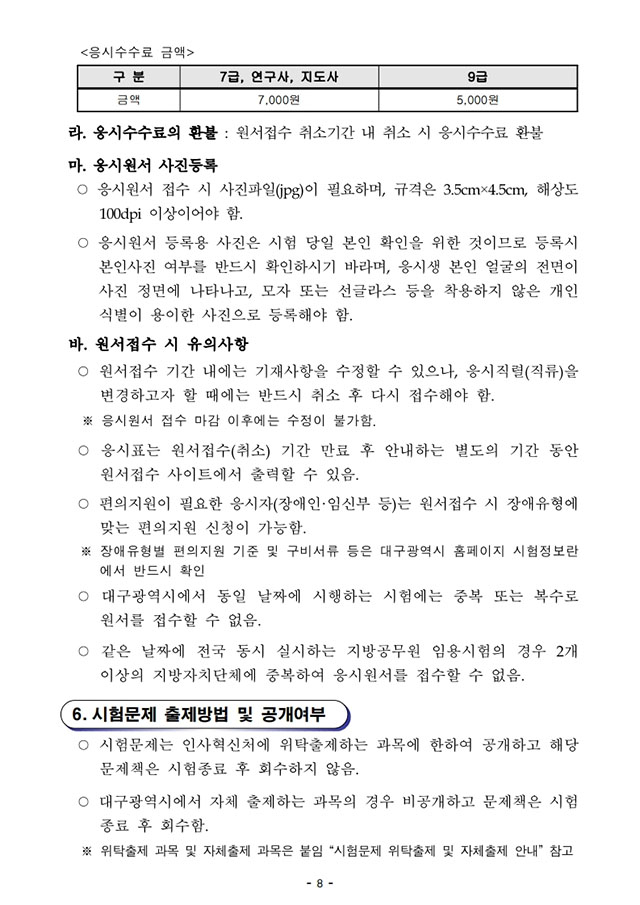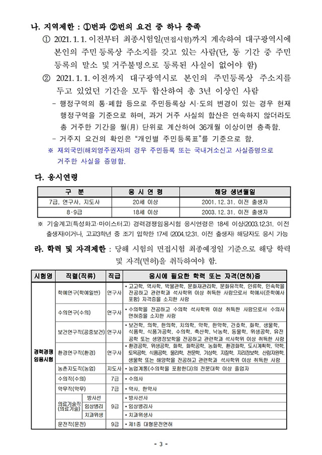 ▶ 2021년도 대구광역시 지방공무원 경력경쟁임용시험 계획 공고