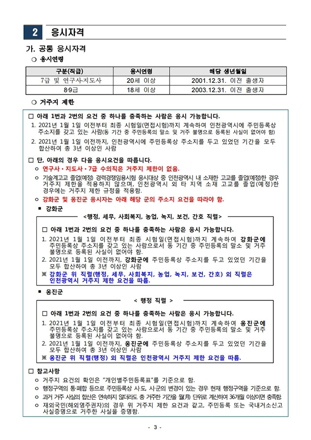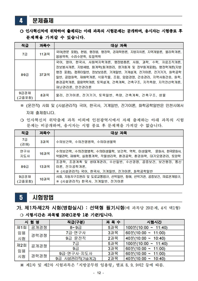 ▶ 2021년도 인천광역시 지방공무원 임용시험 시행계획 공고