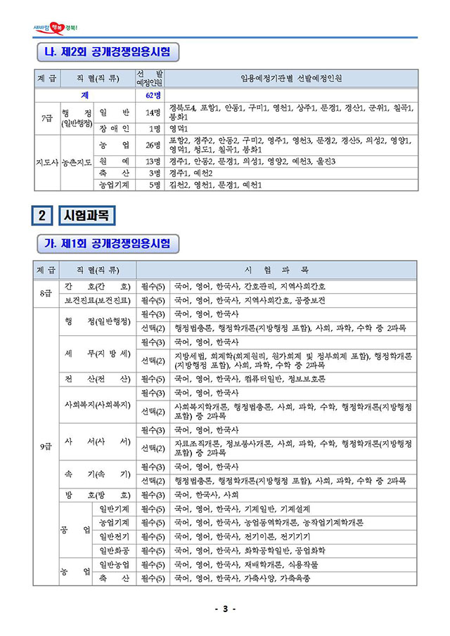 ▶ 2021년도 경상북도 지방공무원 공개경쟁임용시험 계획 공고