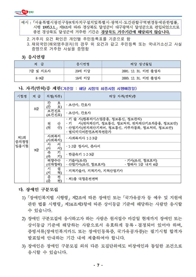 2021년도 경상북도 지방공무원 공개경쟁임용시험 붙임.zip