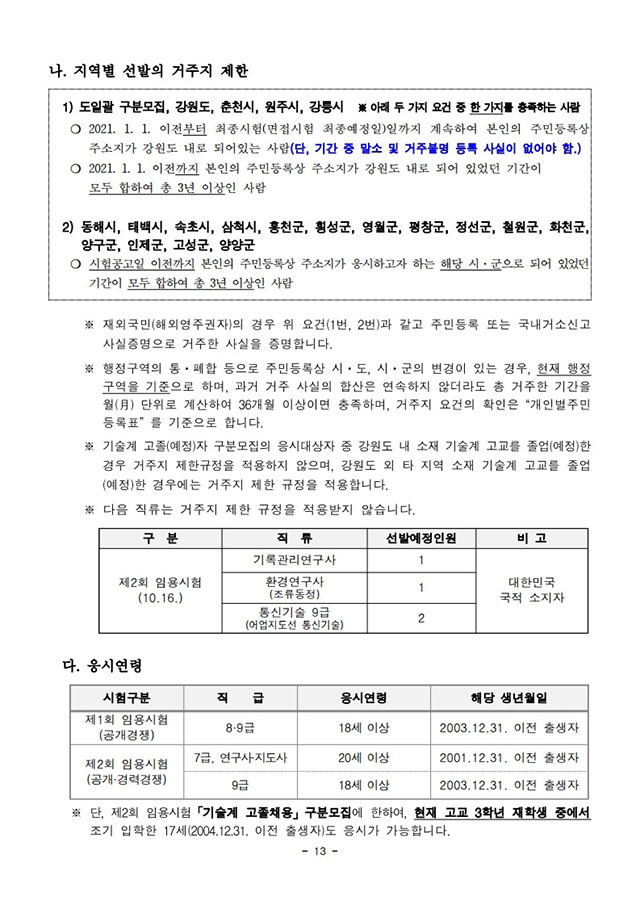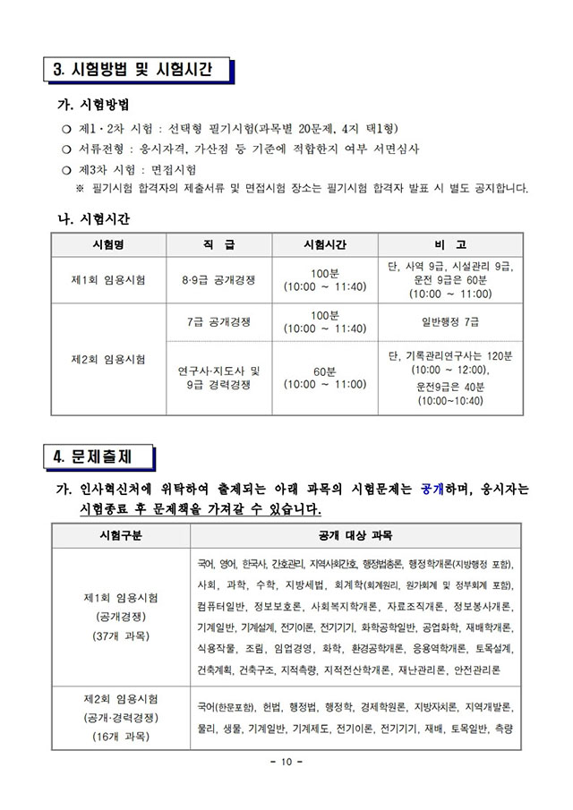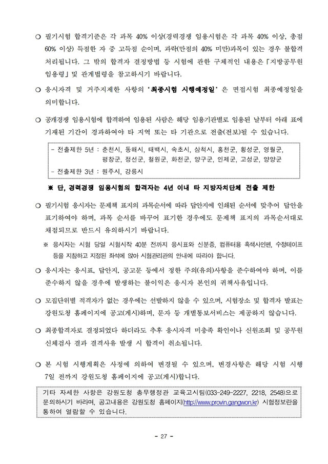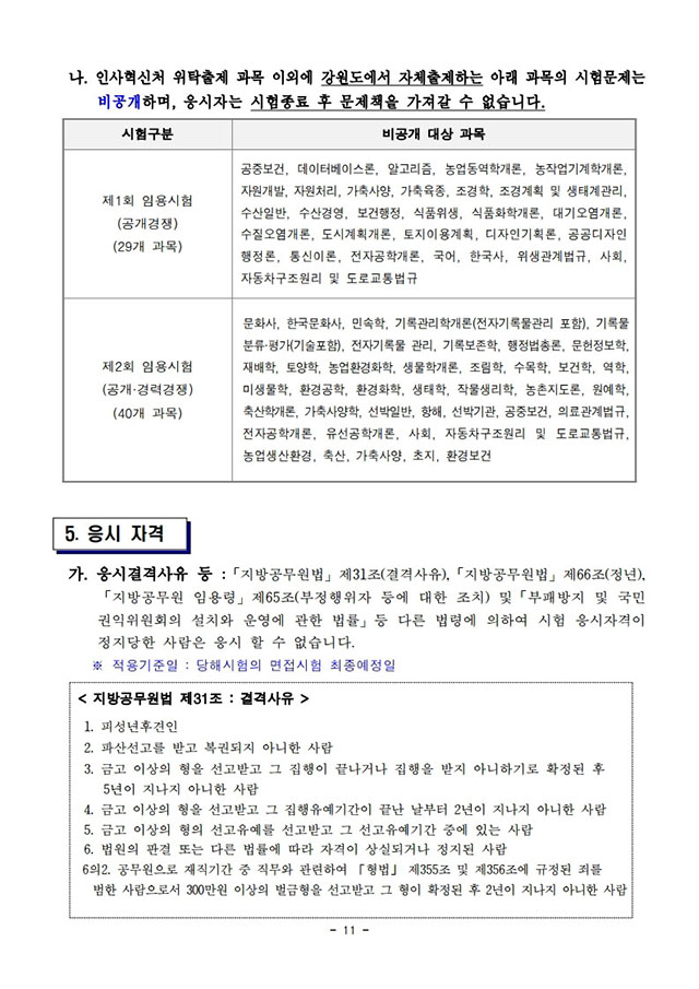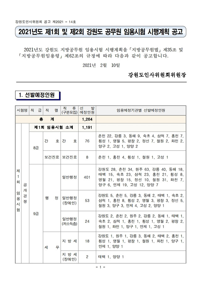 ▶ 2021년도 제1회 및 제2회 강원도 공무원 임용시험 시행계획 공고