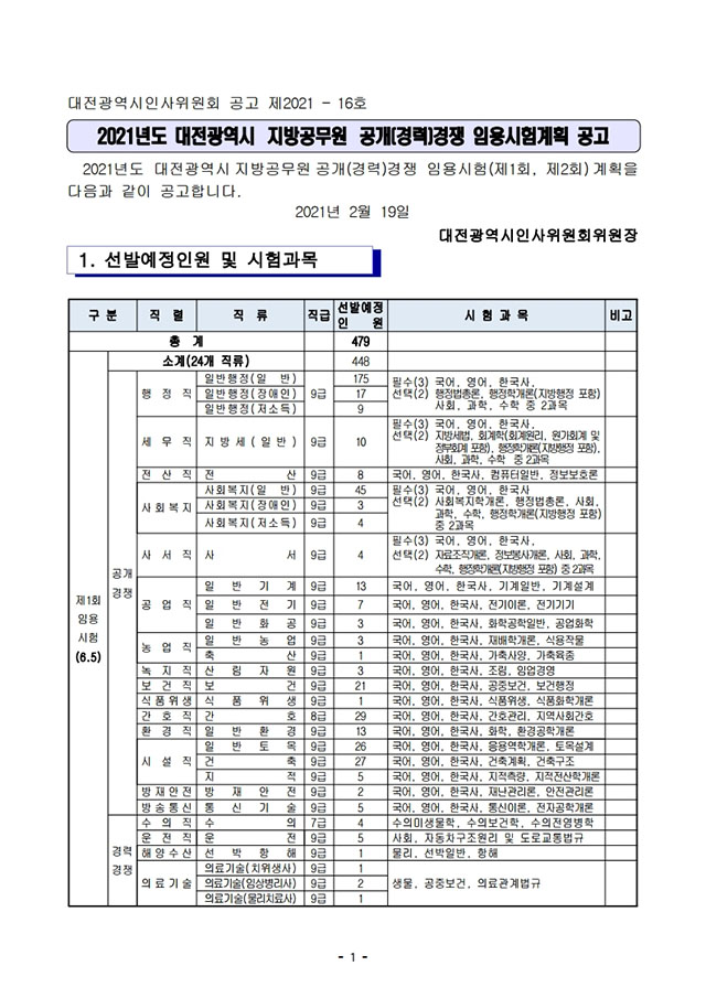(공고문) 2021년도 대전광역시 지방공무원 공개(경력)경쟁 임용시험계획★.pdf