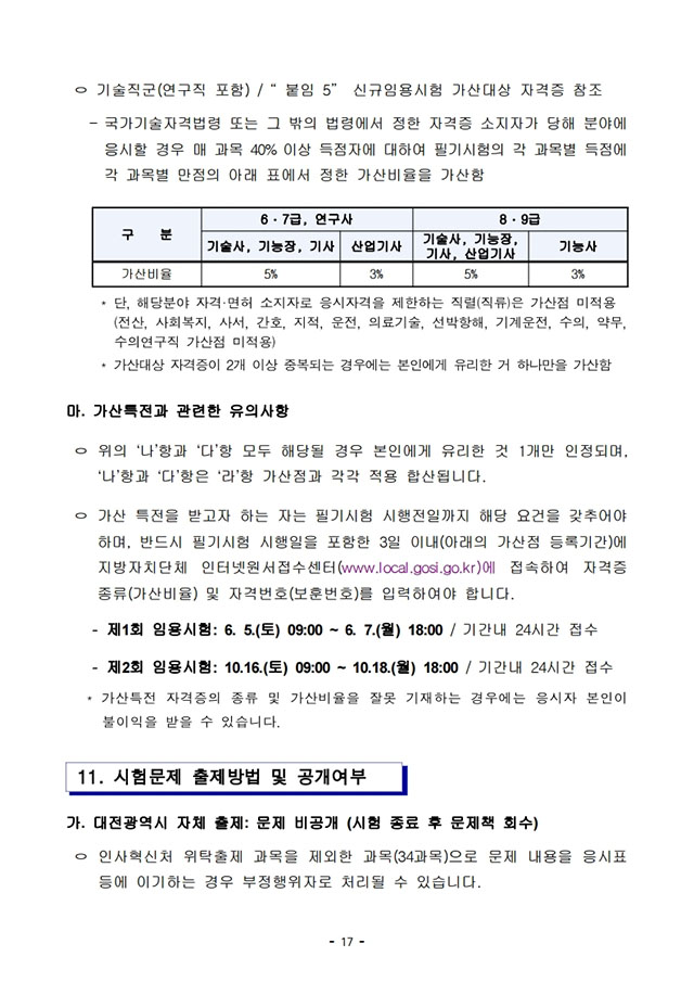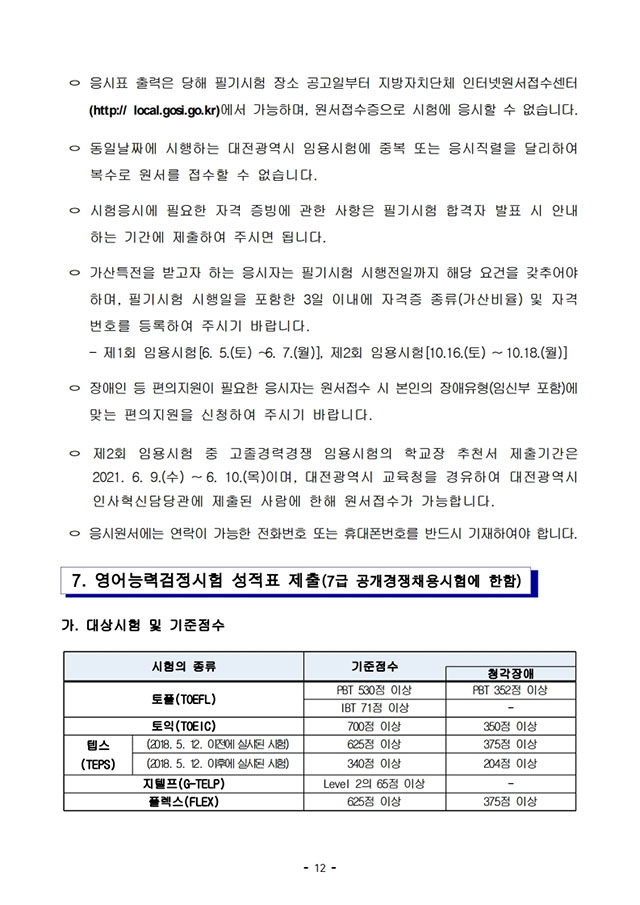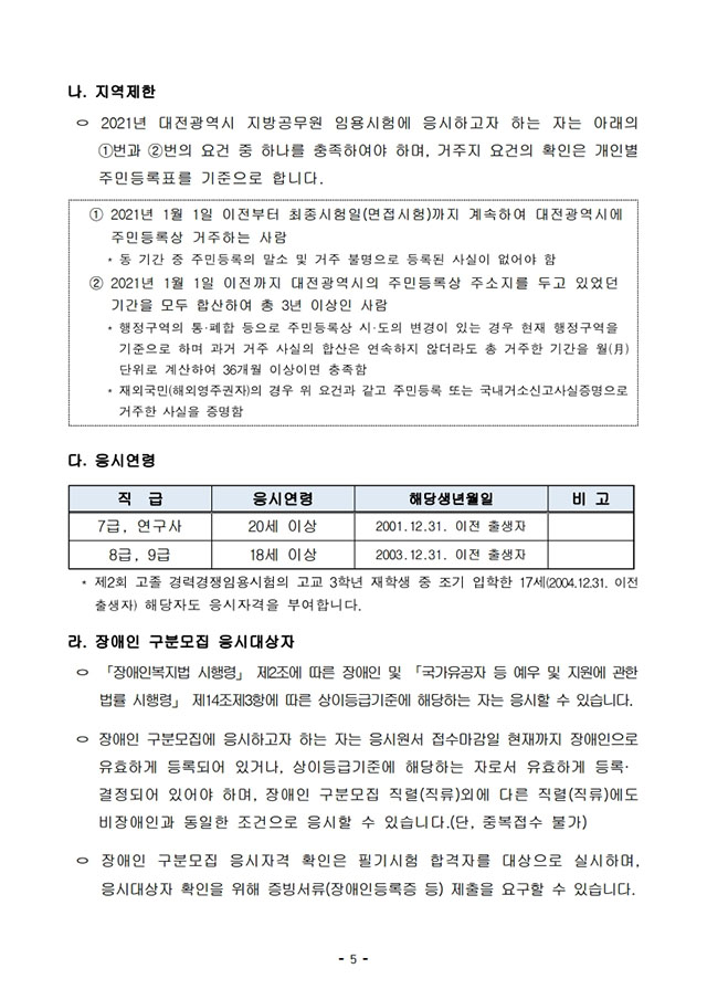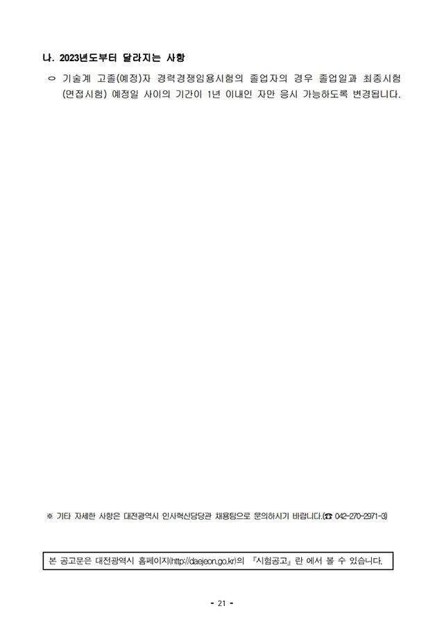 ▶ 2021년도 대전광역시 지방공무원 공개(경력)경쟁 임용시험계획 공고