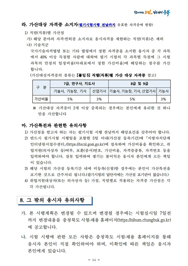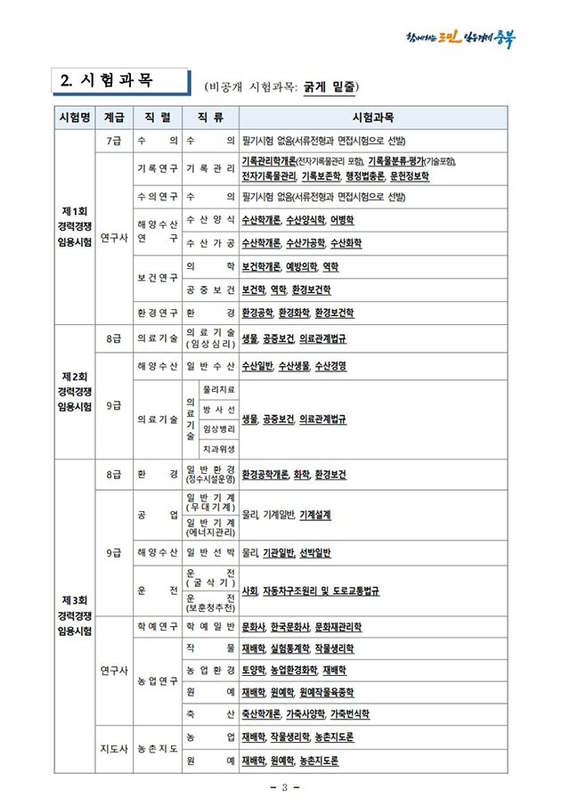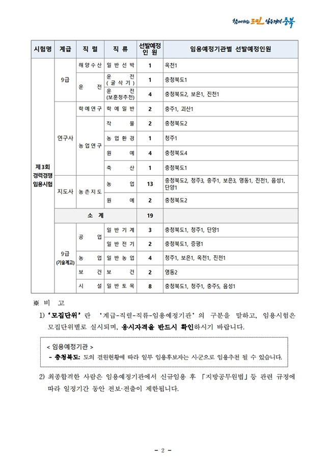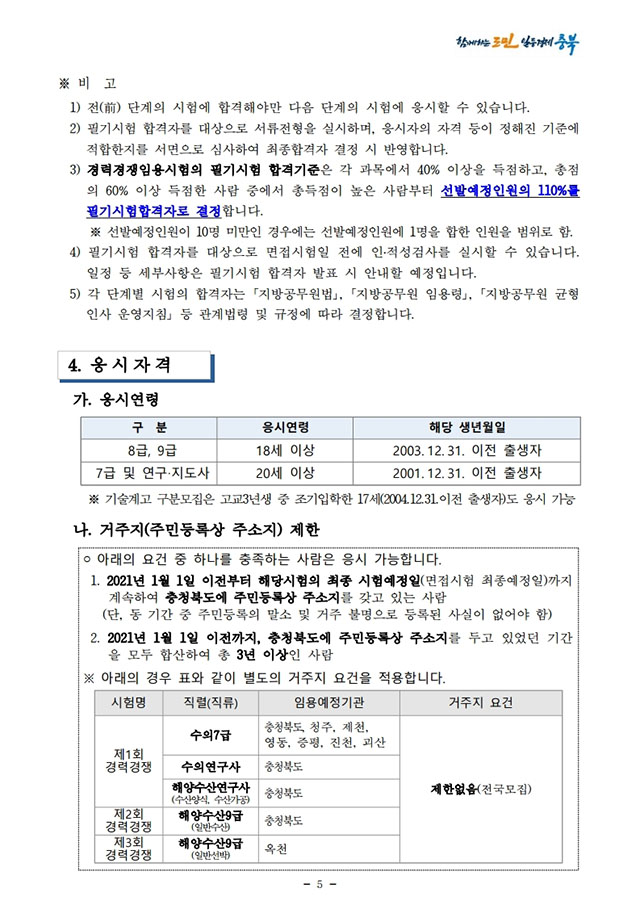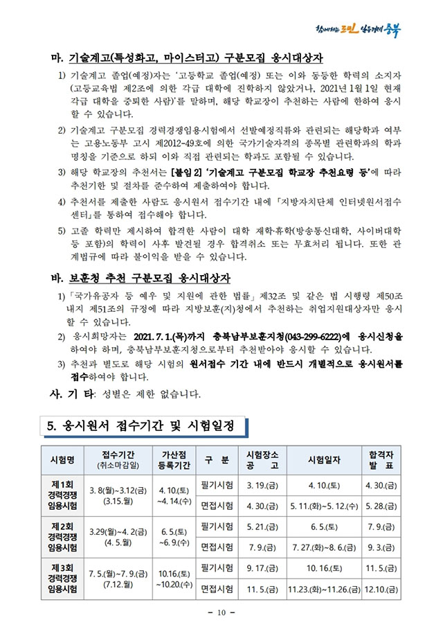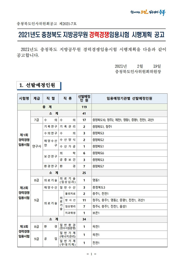 ▶ 2021년도 충청북도 지방공무원 경력경쟁임용시험 시행계획 공고