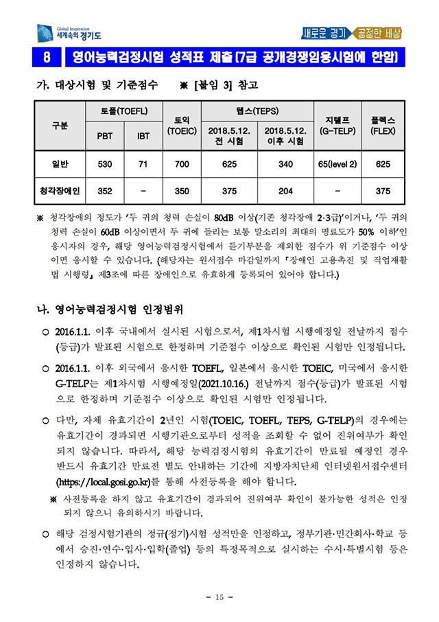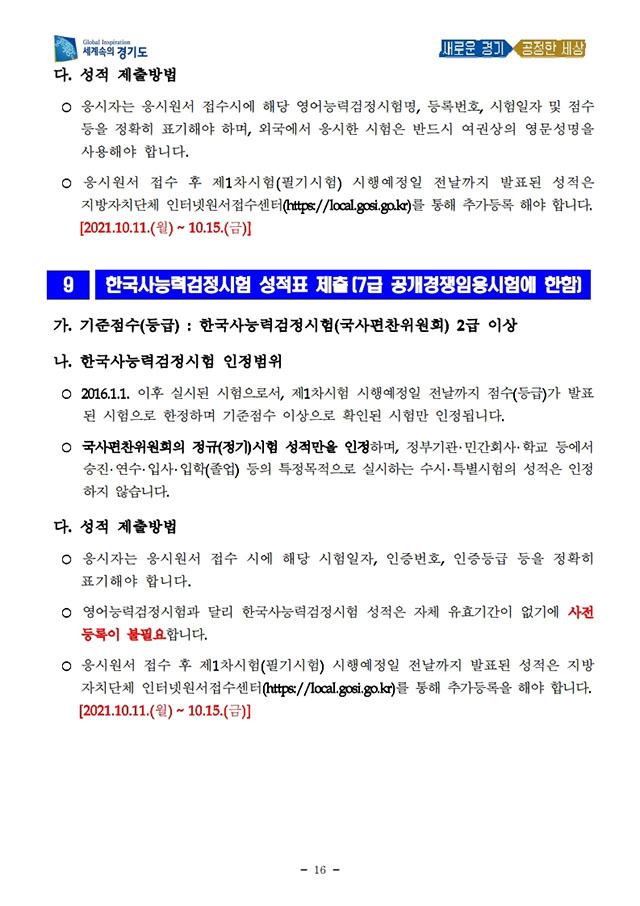 ▶ 2021년도 제1,2회 경기도 지방공무원 공개경쟁임용시험 시행계획 공고