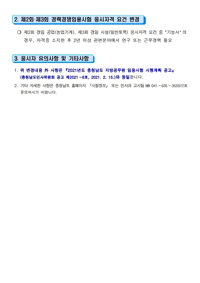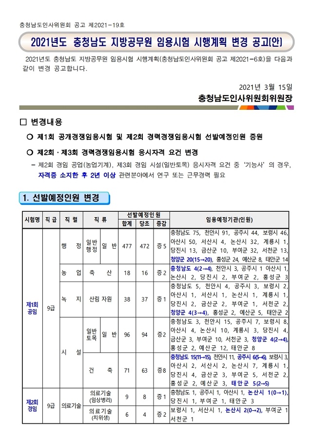 ▶ 2021년도 충청남도 지방공무원 임용시험 시행계획 변경 공고