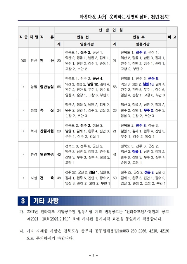 ▶ 2021년 전라북도 지방공무원 임용시험 변경계획 공고(2차)