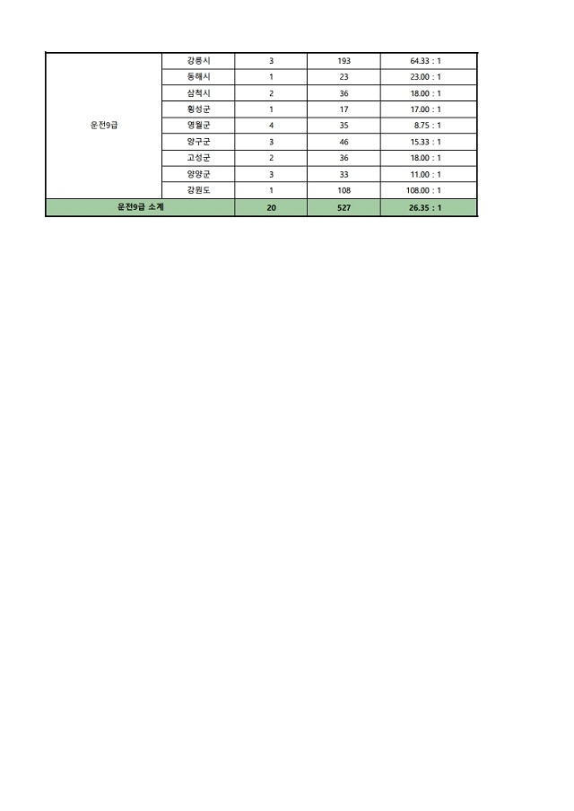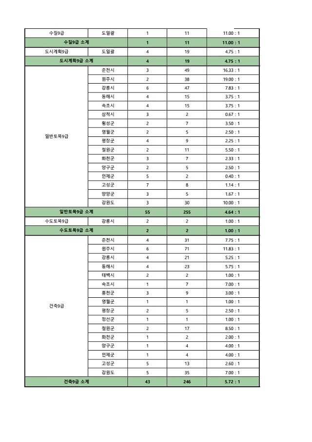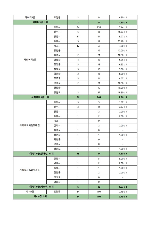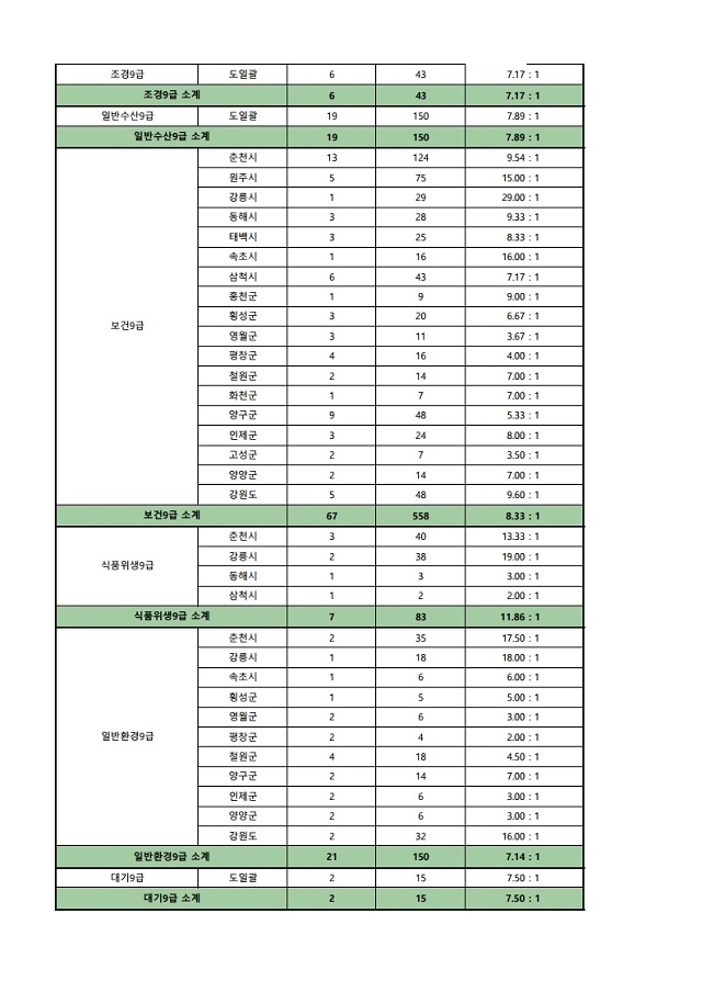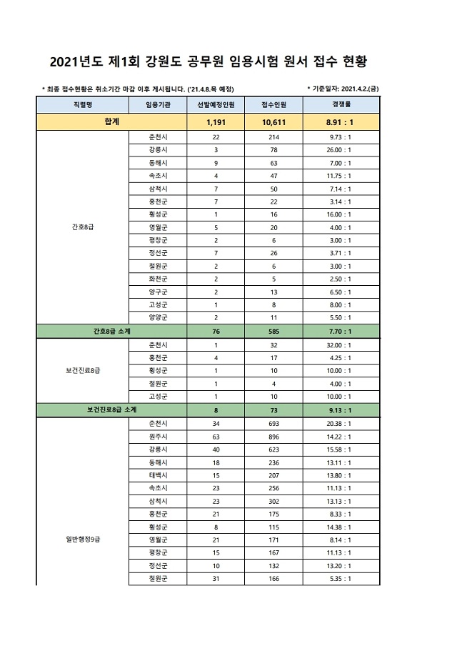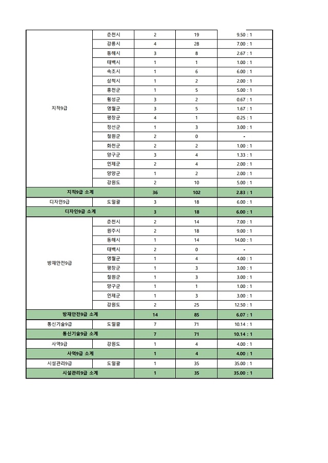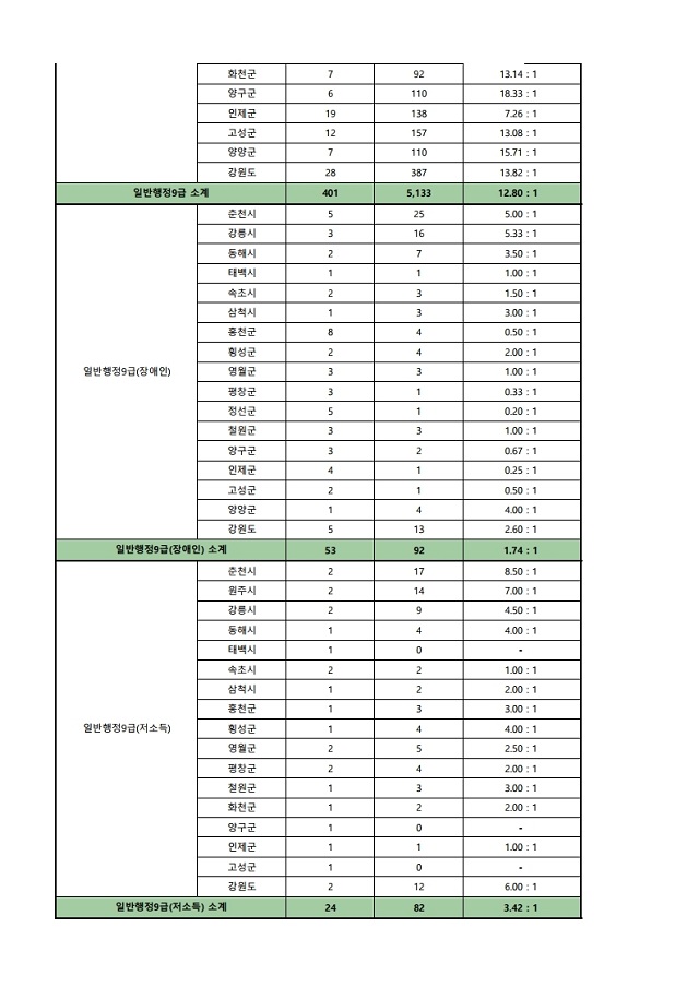 ▶ 2021년도 제1회 강원도 지방공무원 임용시험 경쟁률(잠정)
