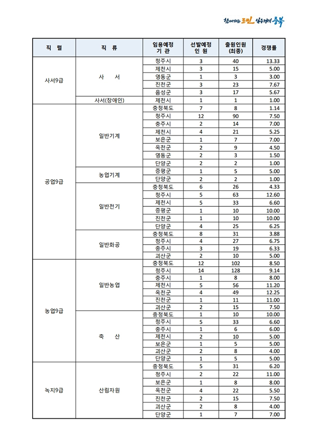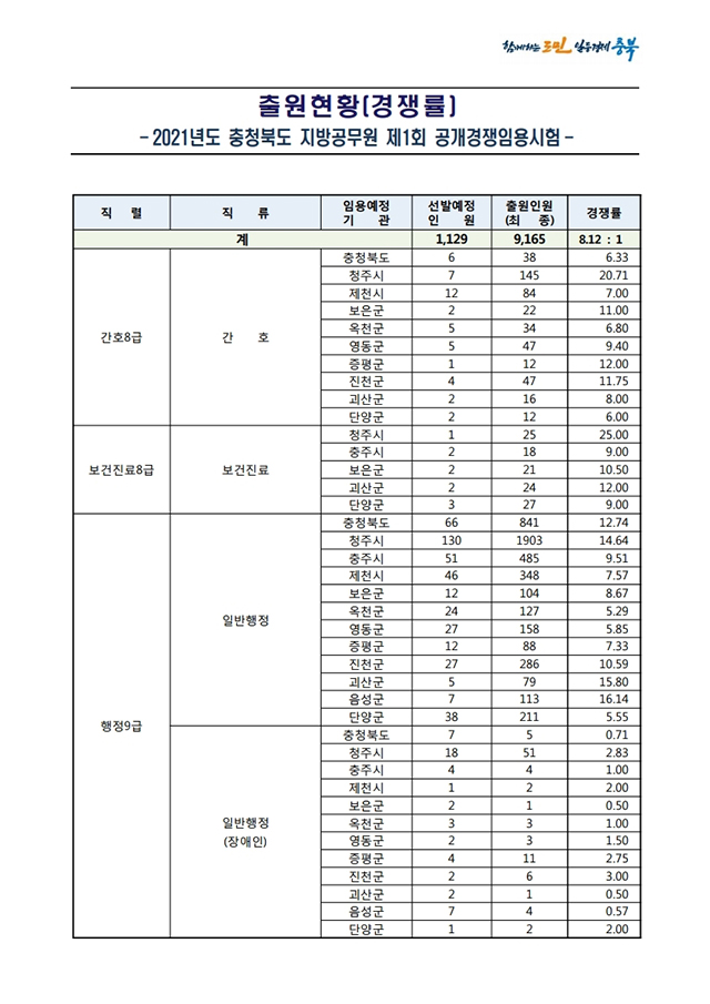 ▶ 2021년도 제1회 충청북도 지방공무원 임용시험 경쟁률
