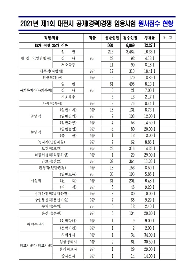 ▶ 2021년도 제1회 대전광역시 지방공무원 임용시험 경쟁률