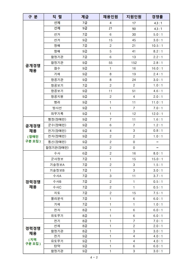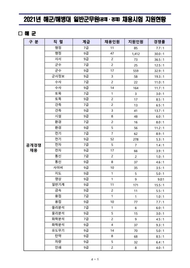 ▶ 2021년 상반기 해군, 해병대 일반군무원 (공채, 경채) 경쟁률