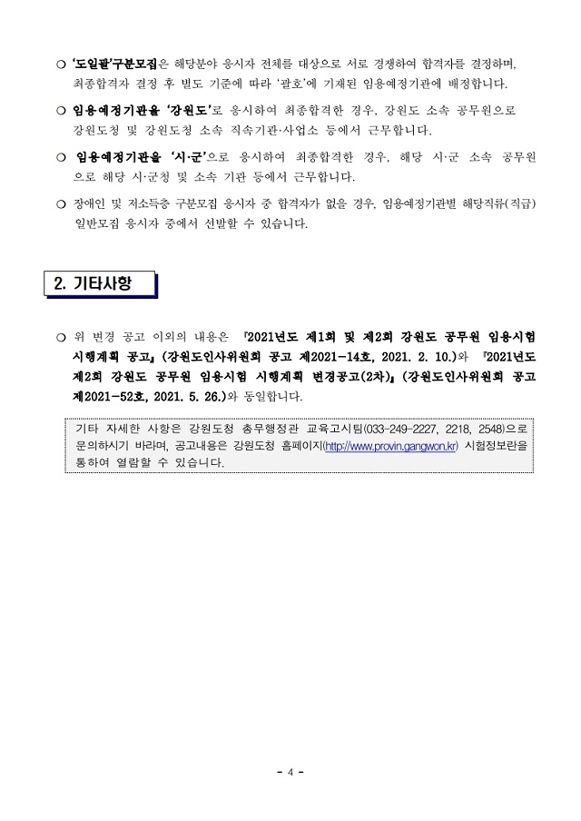 ▶ 2021년도 강원도 지방공무원 임용시험 시행계획 변경 공고