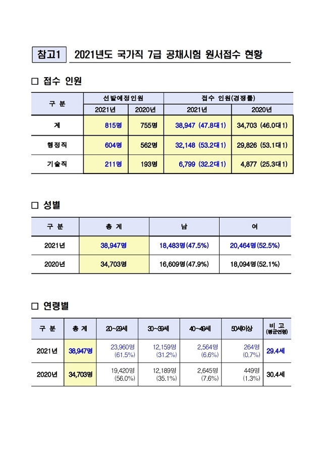 ▶ 2021년도 인사혁신처 국가공무원 7급 공채시험 경쟁률