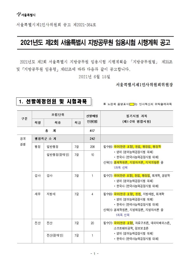 1. 2021년도 제2회 서울특별시 지방공무원 임용시험 시행계획 공고문-최종.hwp