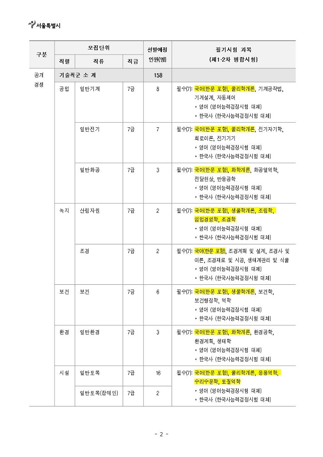 ▶ 2021년도 제2회 서울특별시 지방공무원 임용시험 시행계획 공고