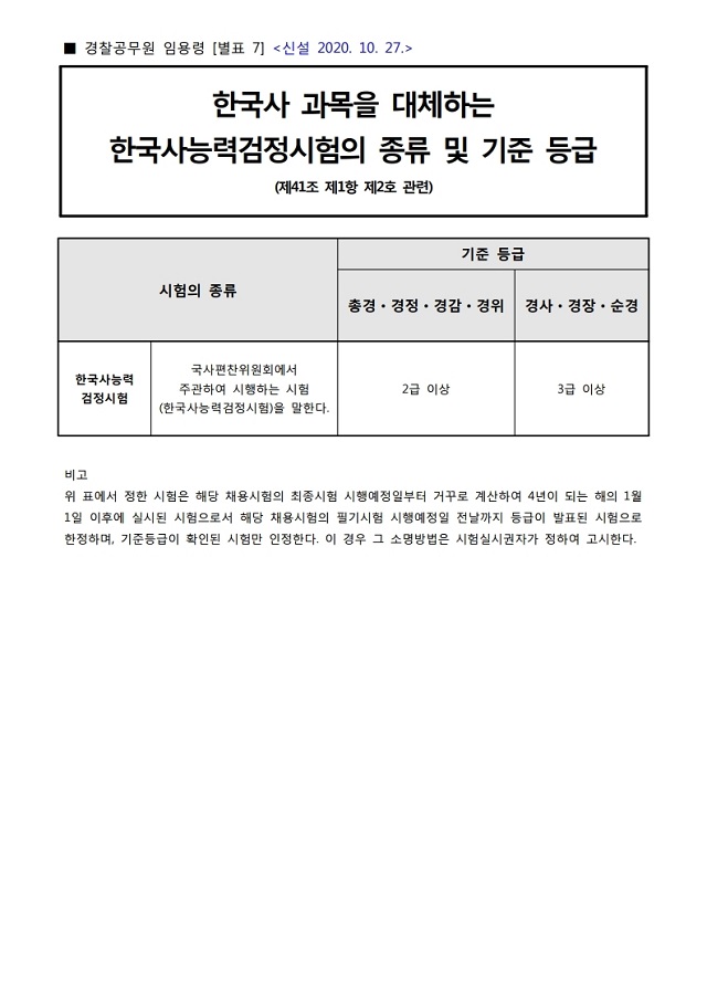 [별표 7] 한국사 과목을 대체하는 한국사능력검정시험의 종류 및 기준 등급(제41조제1항제2호 관련).pdf