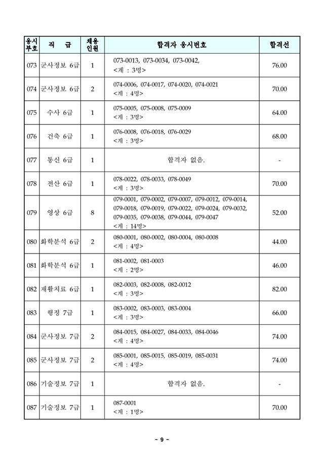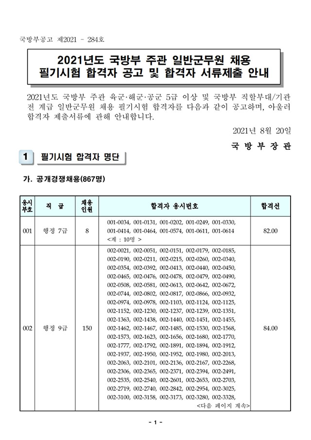 ▶ 2021년도 국방부 주관 일반군무원 채용 필기시험 합격선 및 합격자 공고