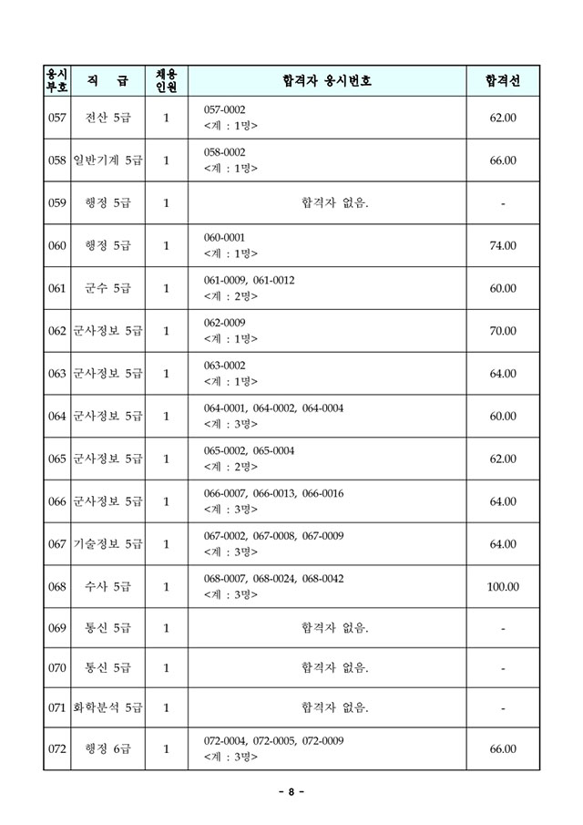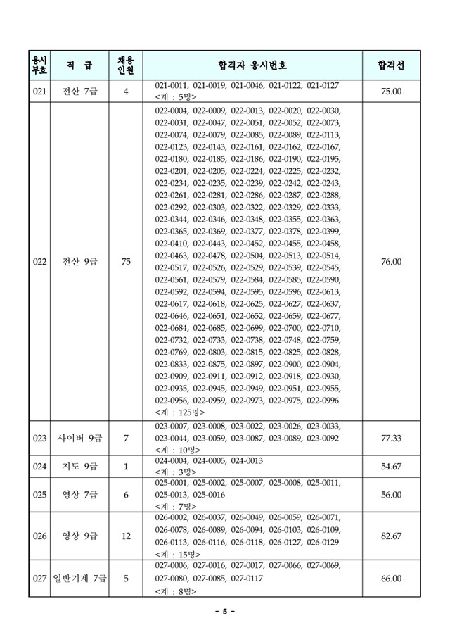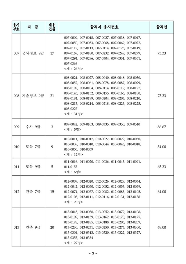2021년도 국방부 주관 일반군무원 채용 필기시험 합격선 및 합격자 공고.pdf
