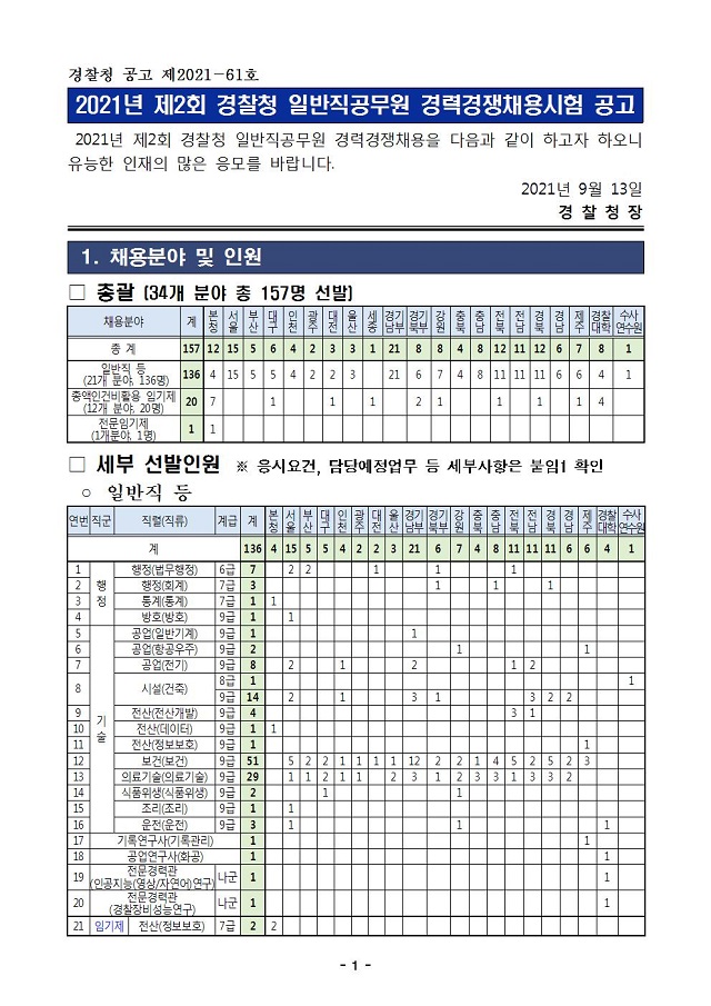 2021년 제2회 경찰청 일반직공무원 경력경쟁채용시험 공고(제2021-61호).hwp