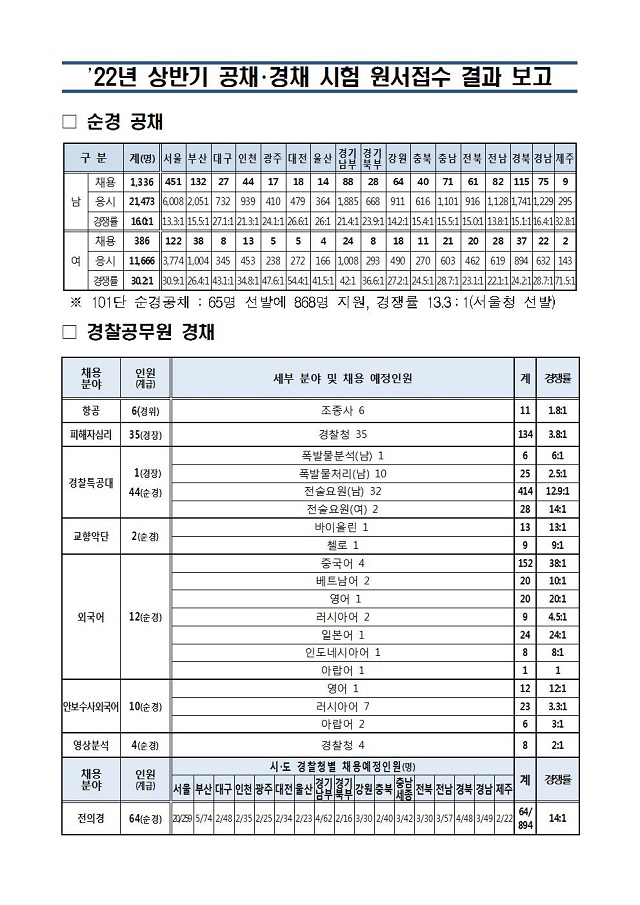 ▶ 2022년 상반기 경찰공무원 공채,경채 경쟁률