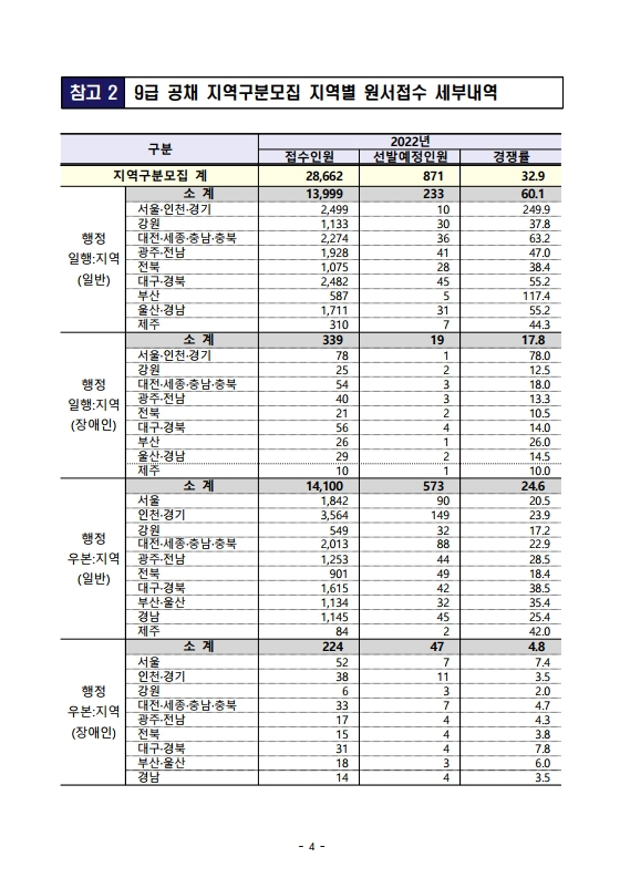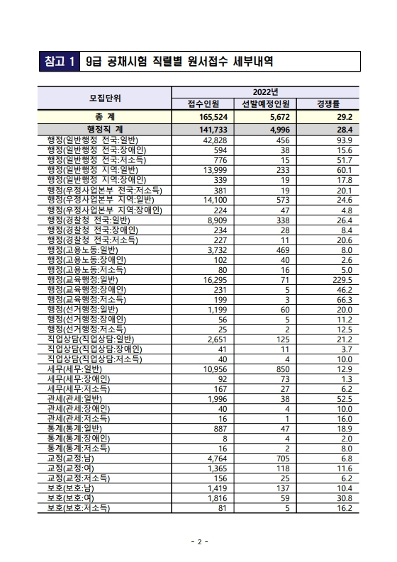 ▶ 2022 인사혁신처 국가공무원 9급 공개경쟁채용시험 경쟁률
