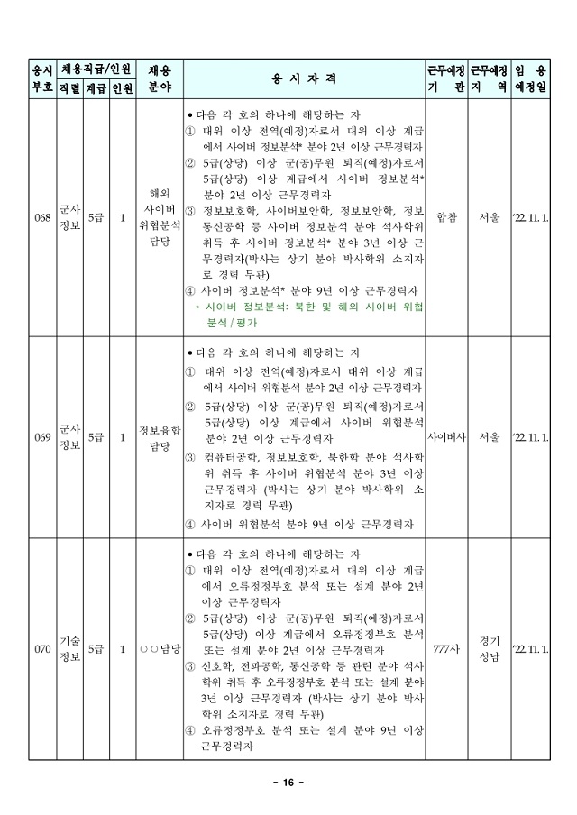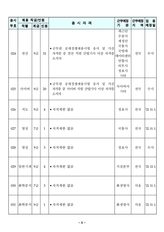 ▶ 2022년도 국방부 일반군무원 채용시험 계획 공고