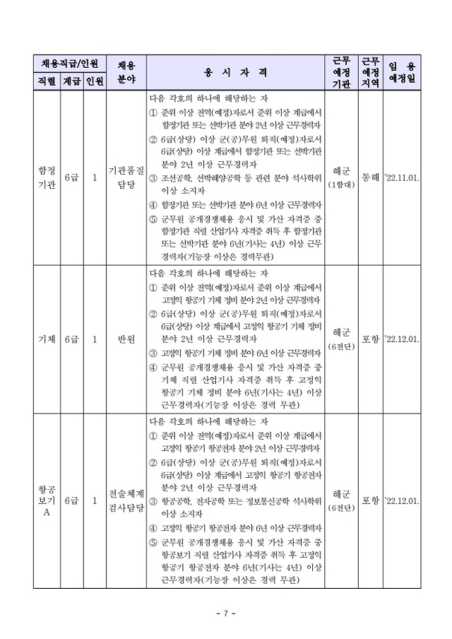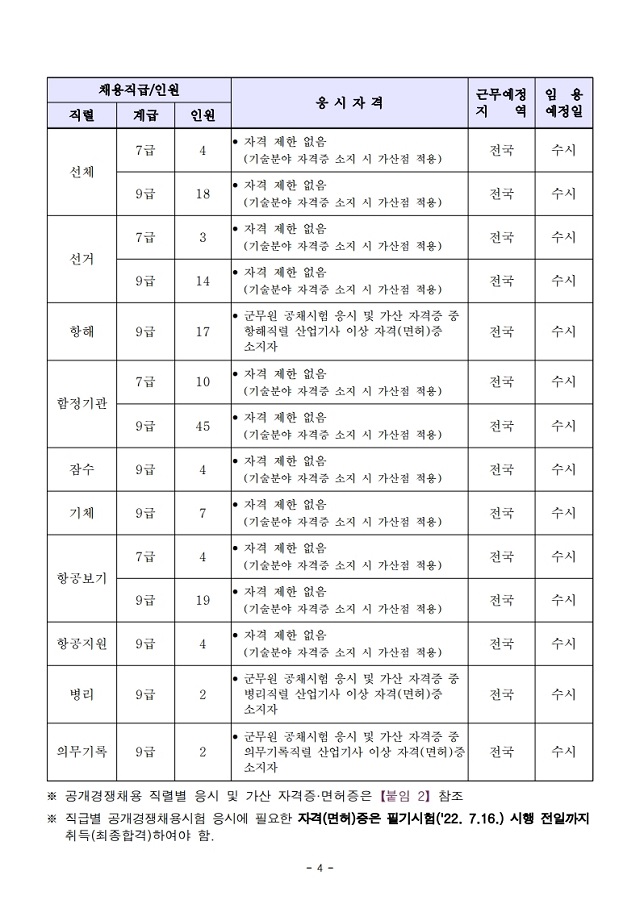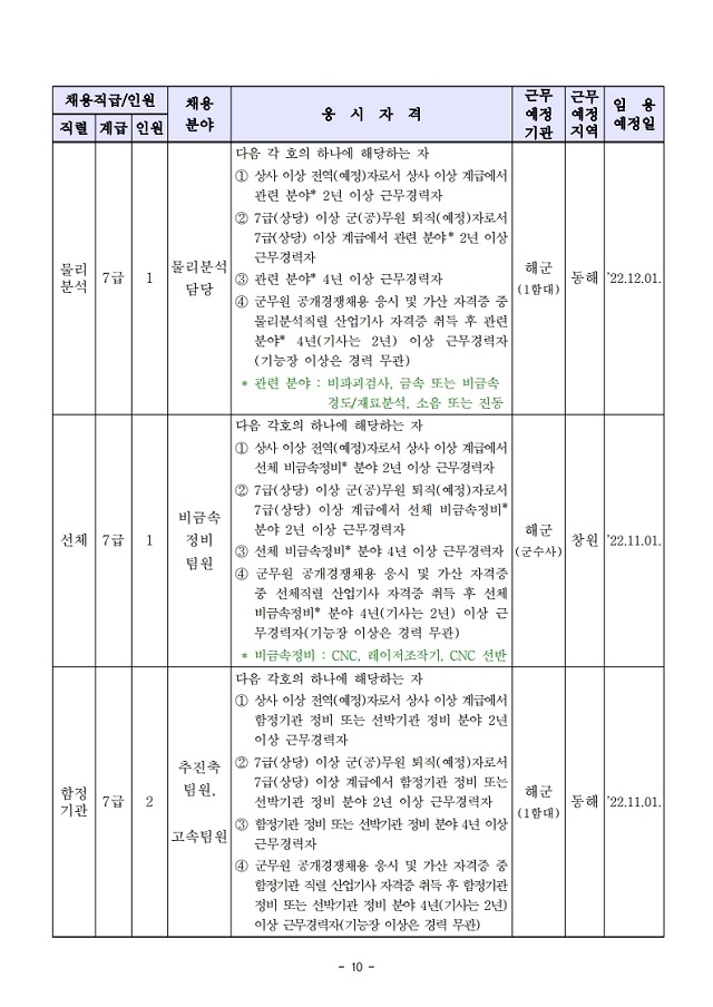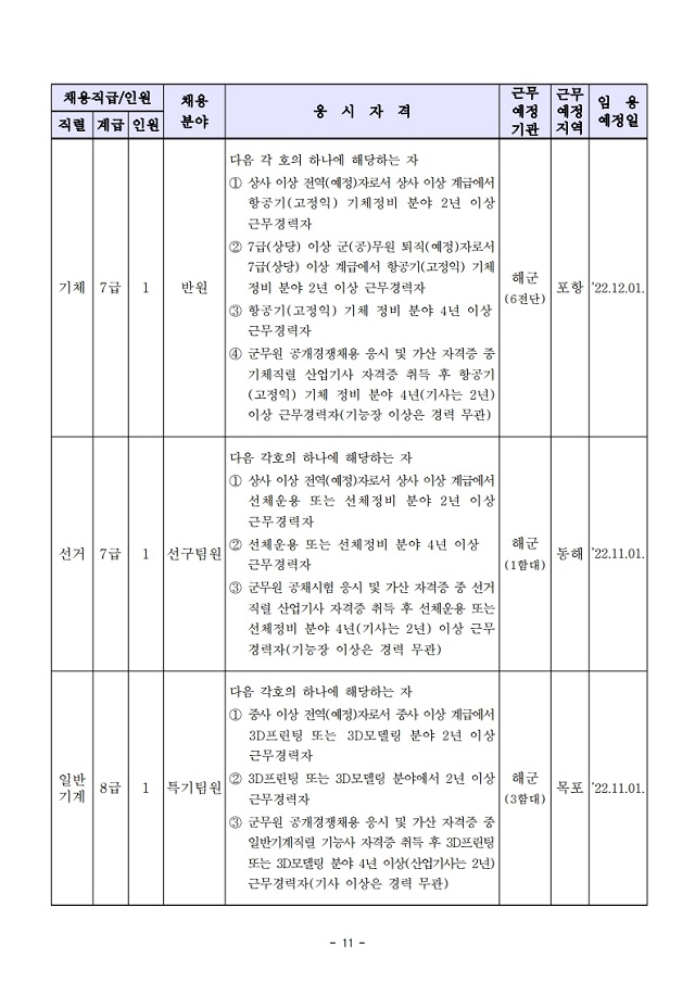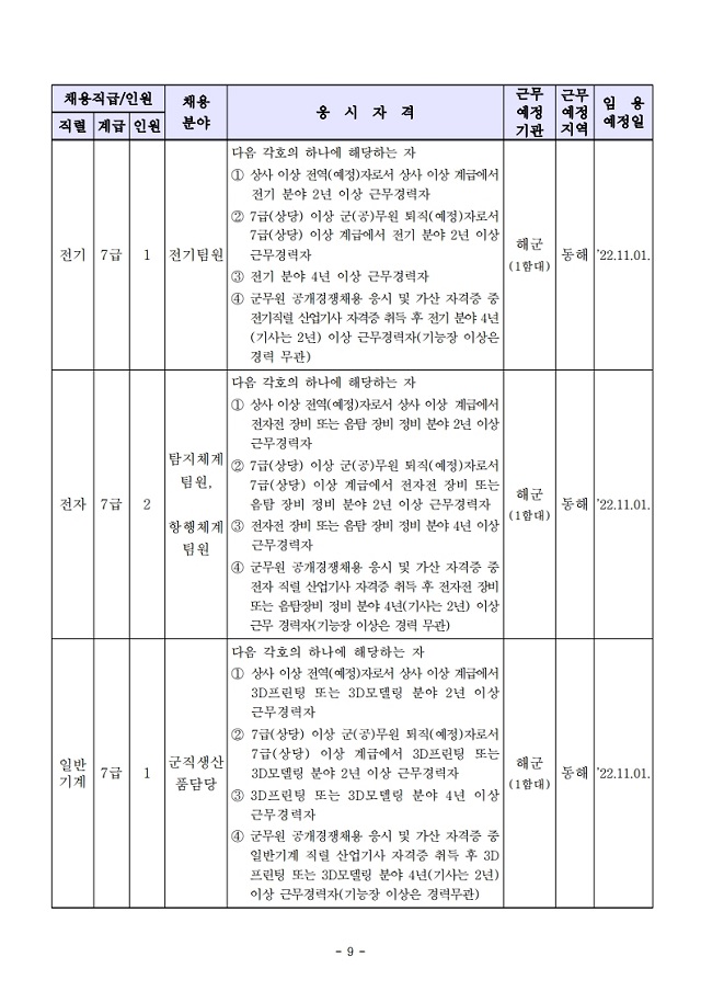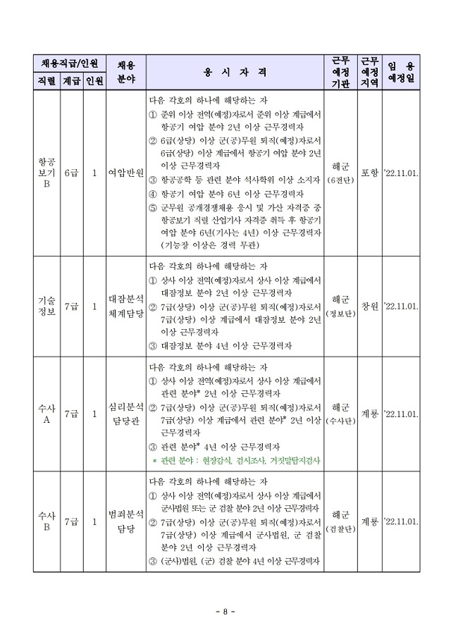 ▶ 2022년도 해군 일반군무원 채용시험 계획 공고