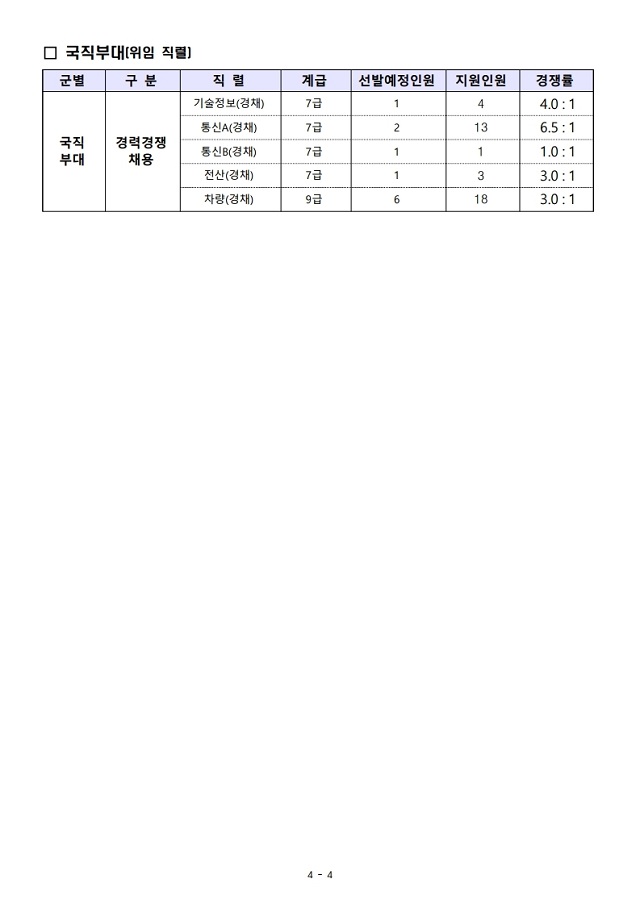 ▶ 2022년 해군, 해병대, 국직부대(위임 직렬) 일반군무원 (공채, 경채) 경쟁률