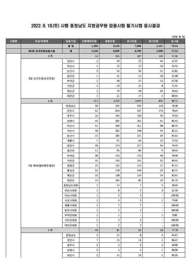 ▶ 2022년도 제2회 충청남도 지방공무원 임용시험 경쟁률