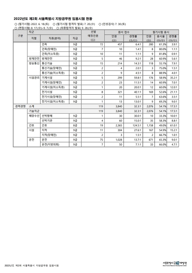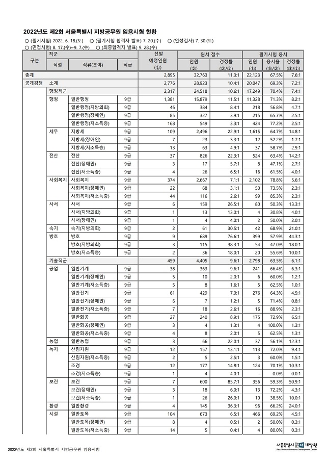 ▶ 2022년도 제2회 서울특별시 지방공무원 임용시험 경쟁률
