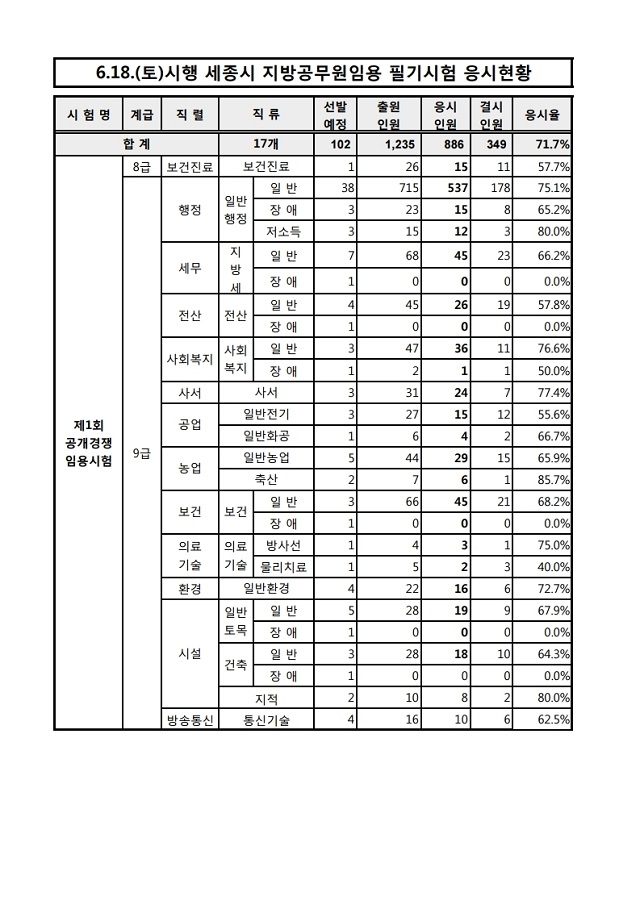 220620 제1회 세종특별자치시 공개경쟁임용 필기시험 직류별_응시현황(게시용).pdf
