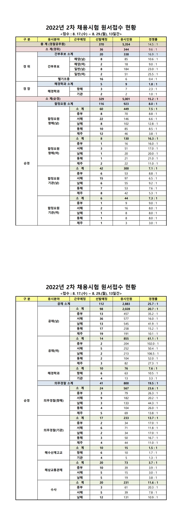 ▶ 2022년 제2차 해양경찰청 경찰공무원 채용시험 경쟁률