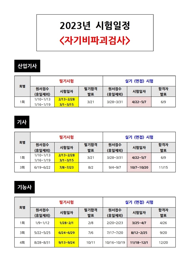 2023 자기비파괴검사 시험일정 (필기/실기)