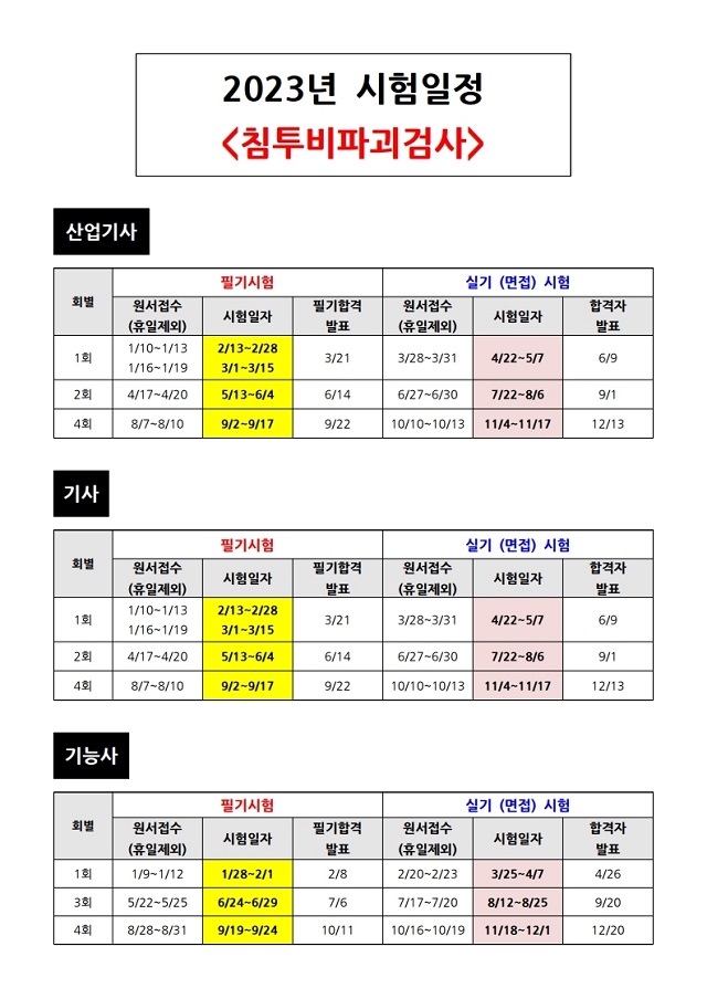 2023 침투비파괴검사 시험일정 (필기/실기)
