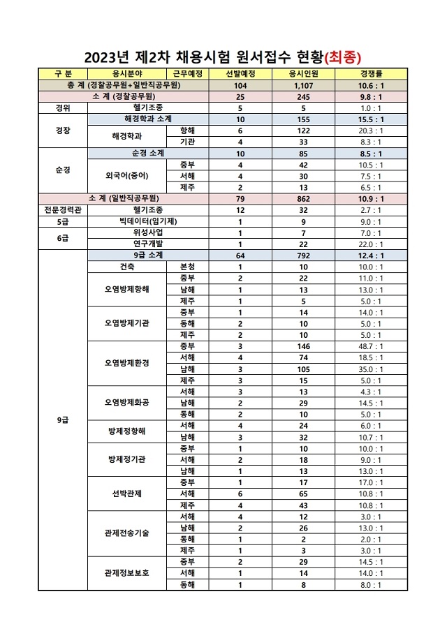 ▶ 2023년 제2차 해양경찰청 경찰공무원 채용시험 경쟁률