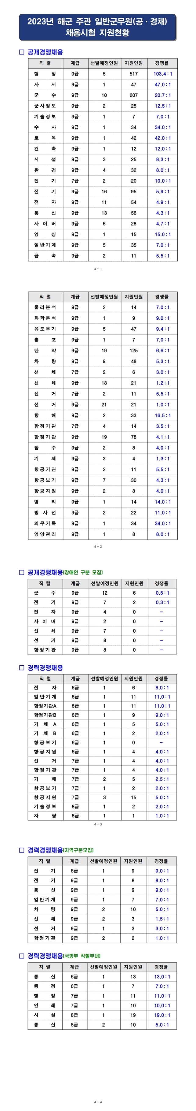 ▶ 2023년 해군 일반군무원 (공채, 경채) 경쟁률