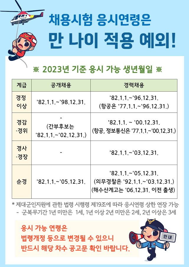 ※ 해양경찰공무원 채용시험 응시연령 안내 (만 나이 적용 예외)